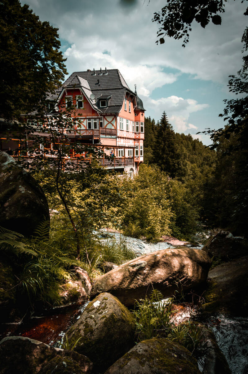 Wir parken am Parkplatz vor dem Bahnhof Steinerne Renne. Von hier geht es stetig bergauf entlang der Holtemme. Der malerische Fluss ist größtenteils naturbelassen und bietet herrliche Aussichten.