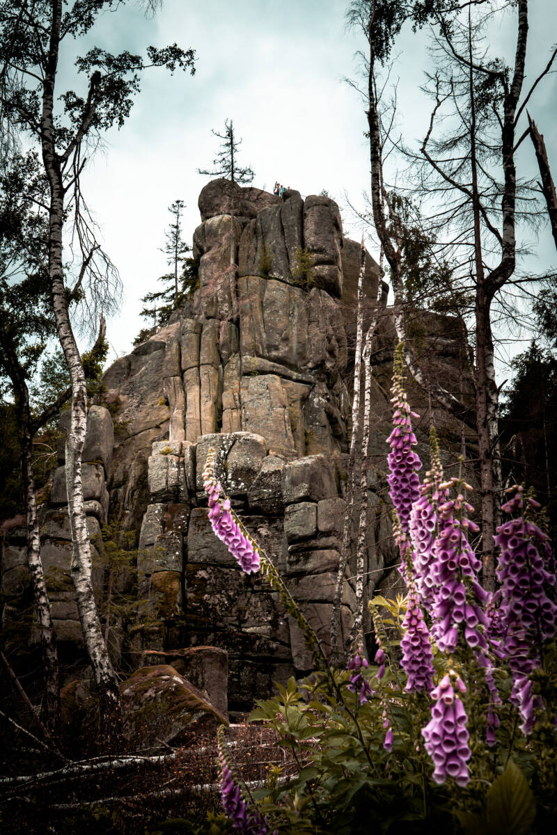 Es ist schon traurig zu sehen, wir sehr der Wald hier gelitten hat. Allerdings macht sich überall der rosa Fingerhut breit und auch das ist ein wunderschönes Bild. Hier befindet sich eine weitere Stempelstelle (HWN027).