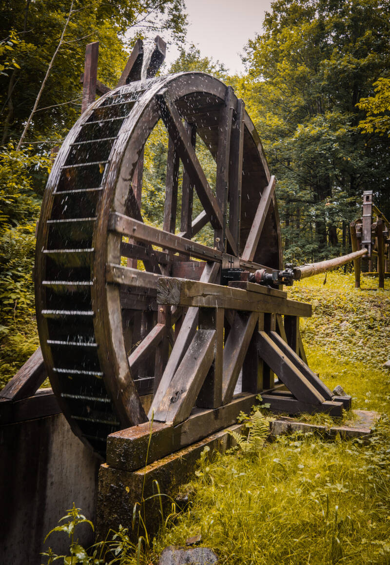 Hierbei handelt es sich um eine originalgetreu aufgebaute Anlage mit Wasserrad, Feldgestänge und Pumpenturm, wie sie früher im Harzer Bergbau genutzt wurde. Eine weitere Stempelstelle (HWN085) wartet hier etwas versteckt auf uns.