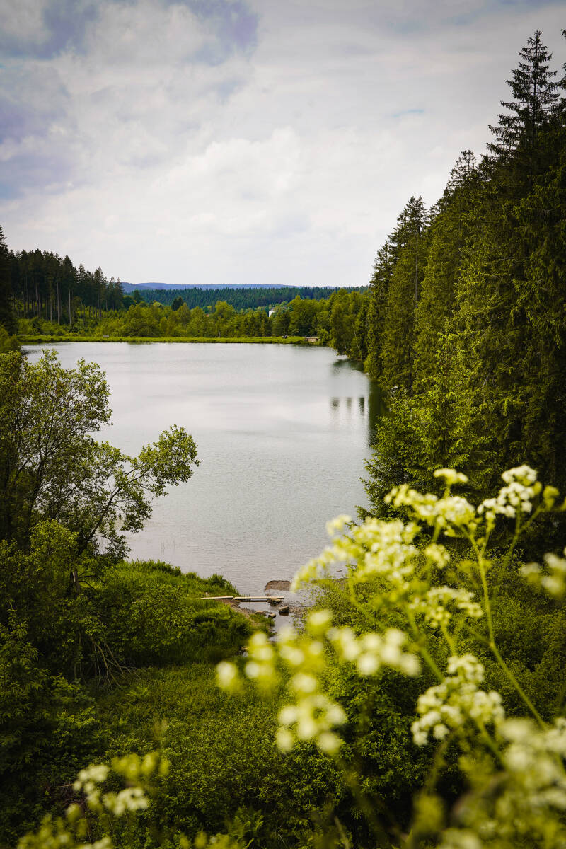 Auf Höhe des Oberen Grumbacher Teichs biege ich nach einem Blick auf den Campingplatz Kreuzeck und den Mittleren Grumbacher Teich Richtung Bocksberg ab.