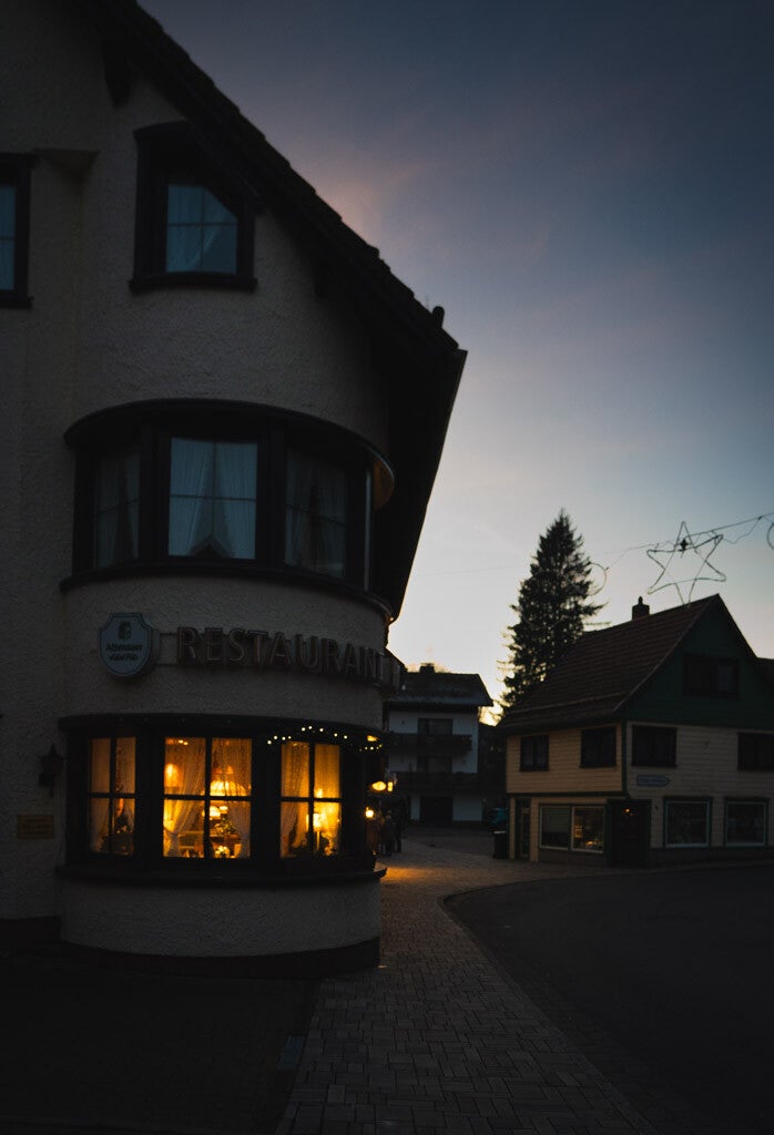 Im Ort angekommen legt sich bereits die Dunkelheit über die Landschaft. Ein paar Fenster in den Häusern leuchten einladend, der Geruch von Holzfeuer liegt in der Luft.