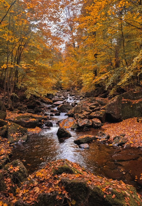 Wir gehen gleich in Richtung Ilse und sind schon beim ersten Anblick begeistert: Der kleine Fluss schlängelt sich glitzernd durch den bunten Herbstwald, begleitet vom Rascheln der Blätter und dem sanften Rauschen des Wassers. Es ist einer dieser Momente, in denen man sofort spürt – hier beginnt eine besondere Wanderung.